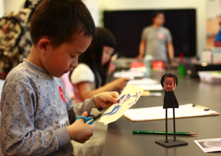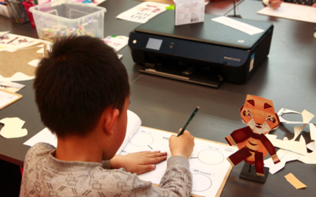 使用打印机内置APP,角色造型随意选——孩子们利用惠省无线打印机的内置多种APP,选定卡通人物、超级明星等自己喜爱身份角色。打印出来并进行手动拼接,再将自己的笑脸粘贴在纸质模板的头部位置,这样角色造型就完成了。