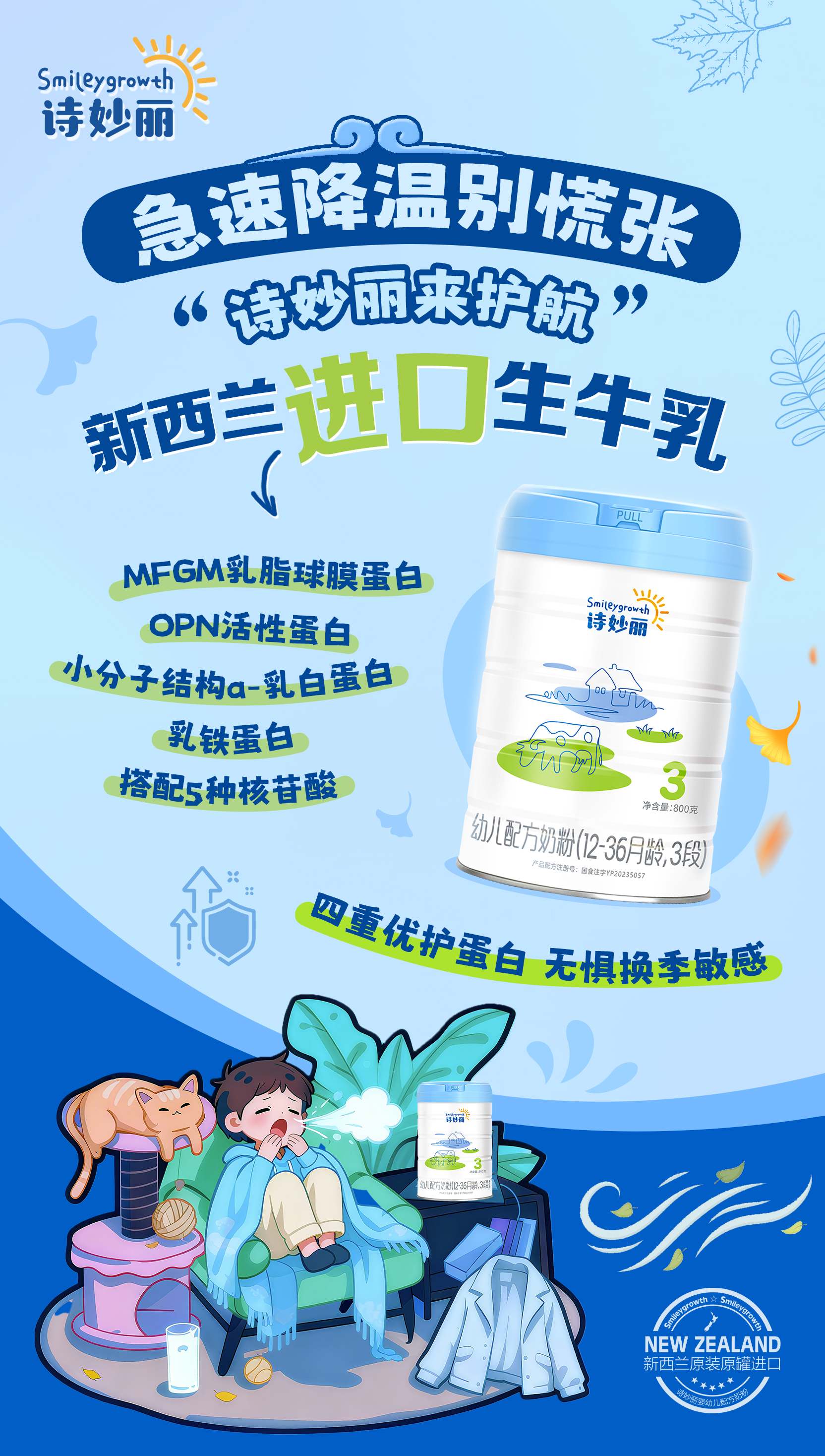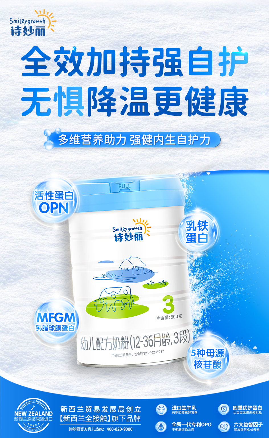 作为新西兰贸易发展局背书的优质品牌,诗妙丽依托新西兰黄金奶源带优势与新国标升级配方,从奶源、营养两大维度精准破解冬季喂养痛点,让宝宝在暖冬里营养不缺位、成长不减速。