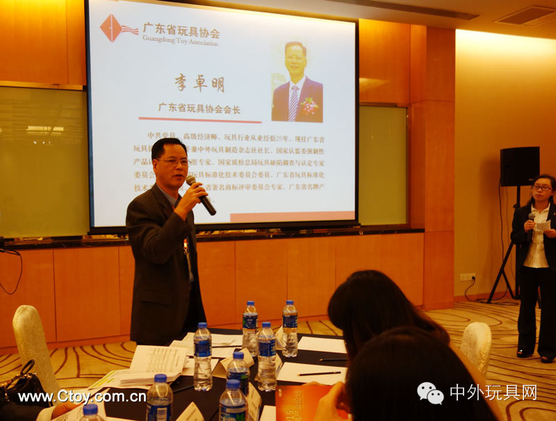 广东省玩具协会会长李卓明在玩具产业专场上发言,介绍广东这全球最大的玩具生产和出口基地情况
