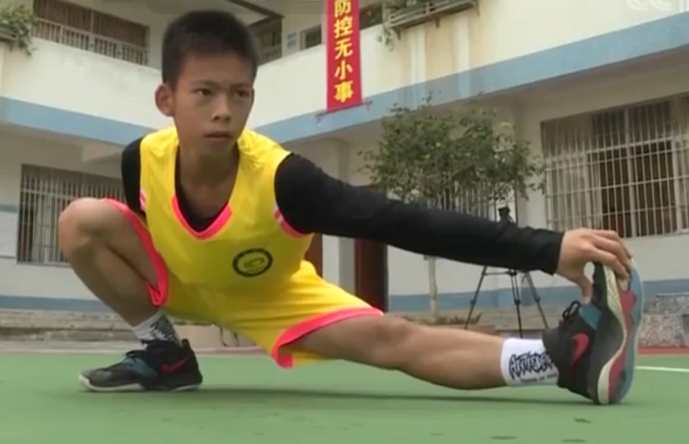 张家城今年13岁,是广东云浮人,5岁时因意外失去右臂。张家城接受采访时说,今后希望成为一名篮球运动员,打更多的比赛。