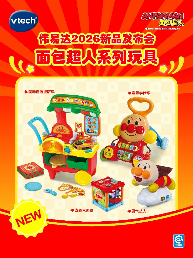 其中,面包超人系列玩具共发布10款新品,分别为“美味自选披萨车”、“音乐学步车”、“勇气面包超人”、“奇趣六面体”、“双语折叠手机”、“趣味面包工厂”等。其中最受瞩目的当为“面包超人·美味自选披萨车”,该产品尚未在中国内地上市时,便已在网络平台引发热烈讨论,积累极高市场期待。伟易达面包超人系列玩具计划4月底陆续上市,将面包超人“爱与勇气”的精神内涵带给更多中国家庭。