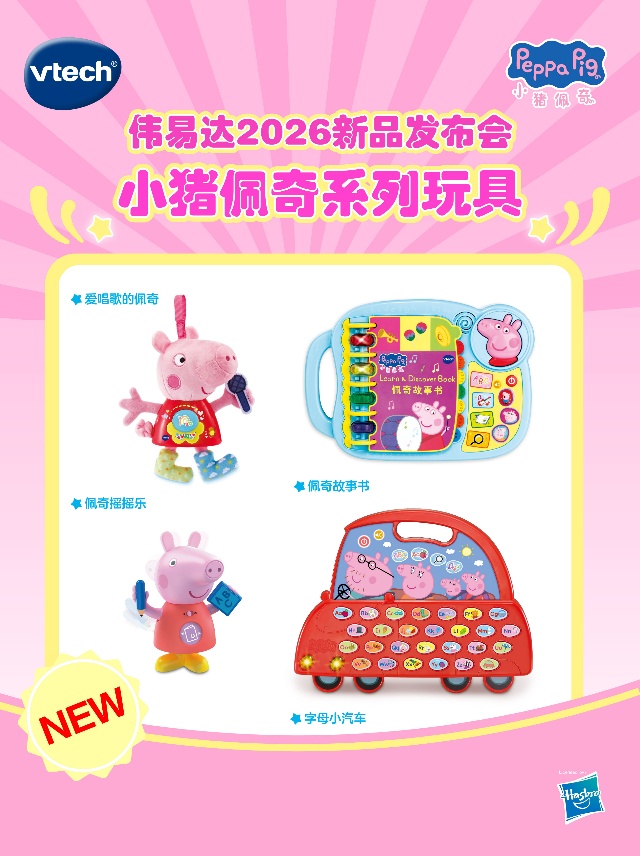 伟易达小猪佩奇系列玩具共亮相4大新品,分别为“字母小汽车”、“佩奇故事书”、“爱音乐的佩奇”、“佩奇摇摇乐”,计划将于4月起登陆全国,为更多中国儿童带去佩奇的治愈陪伴。