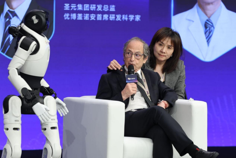 峰会同期还举办了高规格跨界圆桌论坛,特邀诺贝尔化学奖得主迈克尔・莱维特教授、浙江大学沈岳良教授、优博盖诺安首席研发科学家闫永刚总监、知名育儿博主年糕妈妈李丹阳四位嘉宾同台,围绕“儿童生长发育关键营养补充及科学喂养方式”展开深度对话。现场优博盖诺安科学助理AI 机器人 “小盖” 也惊喜亮相,与莱维特教授展开智能互动,共同探讨生命早期营养前沿方向。嘉宾们从家长喂养焦虑、科学喂养误区、关键营养配方设计、AI 与个性化喂养未来等维度深入交流,一致认同科学喂养的核心是精准匹配、高效吸收、系统支持,为现场观众与千万家庭带来兼具专业性与实用性的喂养指引,也为行业高质量发展提供了清晰思路。